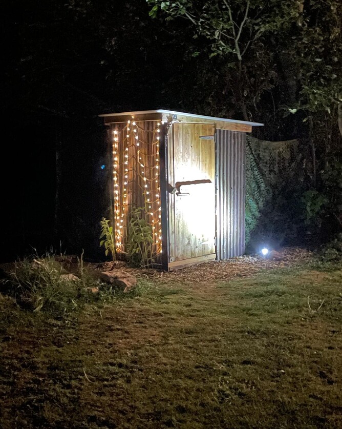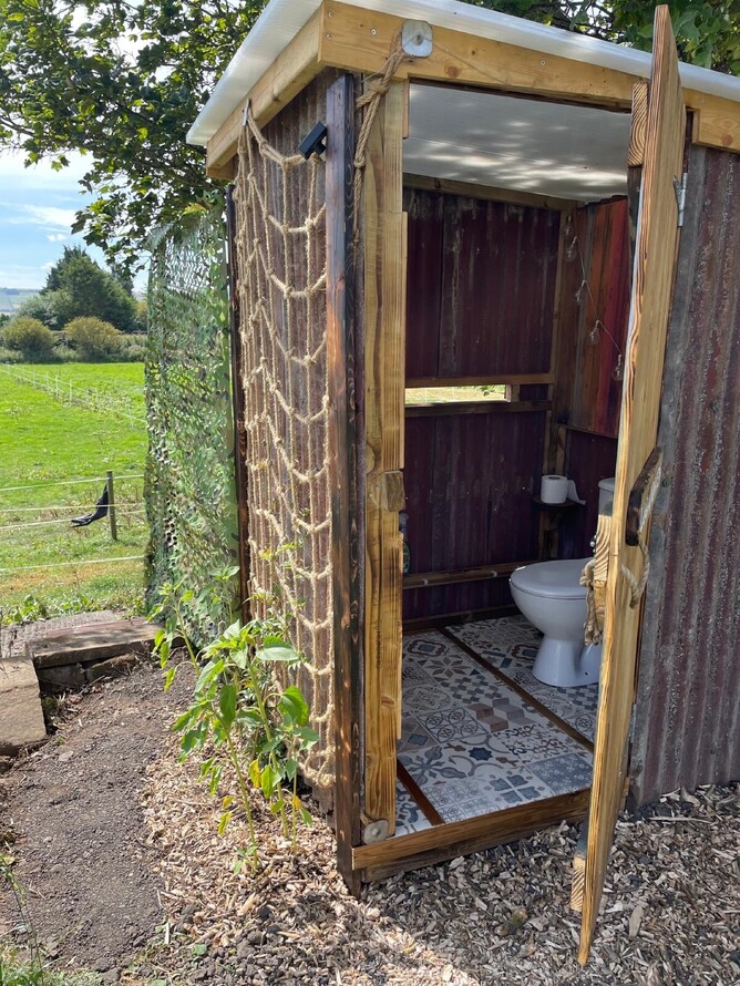 We have just completed construction of our new, and second, flushing toilet on site. This will take our total loo count to four (including our two compost toilets)! Now guests won't have to worry about tearing their eyes away from our gorgeous landscape when they pop to the loo. Take a look at the finished product...