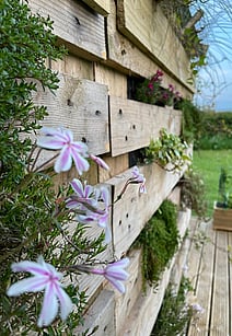 Wildflower Meadows and Eco-wallsAs part of our commitment to reducing our carbon impact, we have turned some formerly intensively farmed land into a wildflower meadow, reduced the frequency of grass cutting, and ceased spraying near the campsite area. For both guests and pollinators, we have installed hanging flower baskets around the showers and constructed eco-walls on the flanks of our cabins.