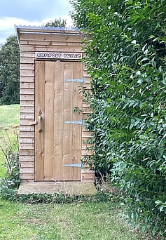 Recycling MaterialsReducing waste and utilising building materials already on the farm are at the forefront of our efforts to expand the campsite. For example, we have used timber pallets to construct our eco-walls and materials such as corrugated tin, hessian sacks, and discarded tiles to furnish our cabins and tents. Recently, we have installed a second toilet facility—a compost toilet—as part of our project to reduce energy wastage.